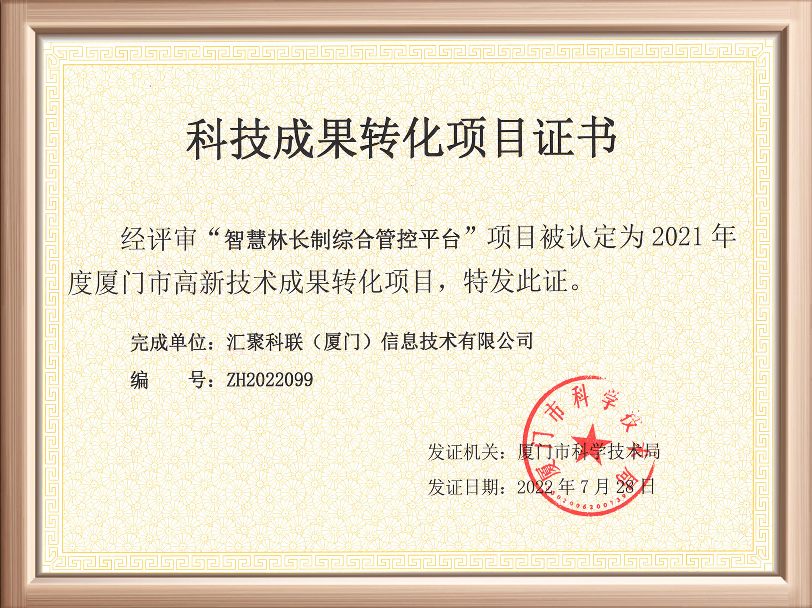 匯聚科聯(廈門)信息技術有限公司創立于2016年,總部位于廈門市火炬高新技術產業園,公司是國家級高新技術企業、福建省“瞪羚”企業、廈門市高新技術企業、廈門市重點軟件企業、中國林學會計算機應用分會理事單位、中國水利企業協會會員單位。